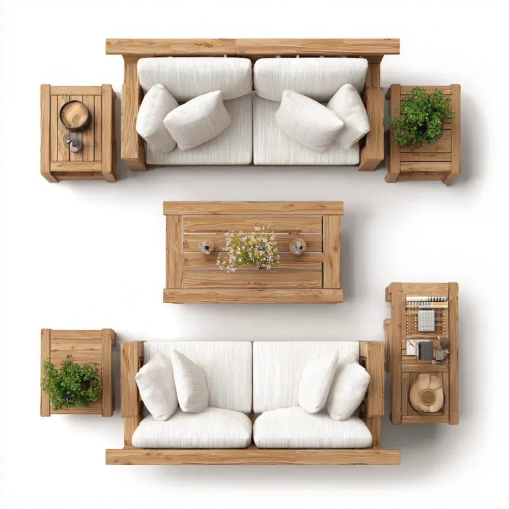 Conjunto de Sofás de Jardín Madera Maciza 200x90x75 cm – Blanco Crema – Diseño Contemporáneo