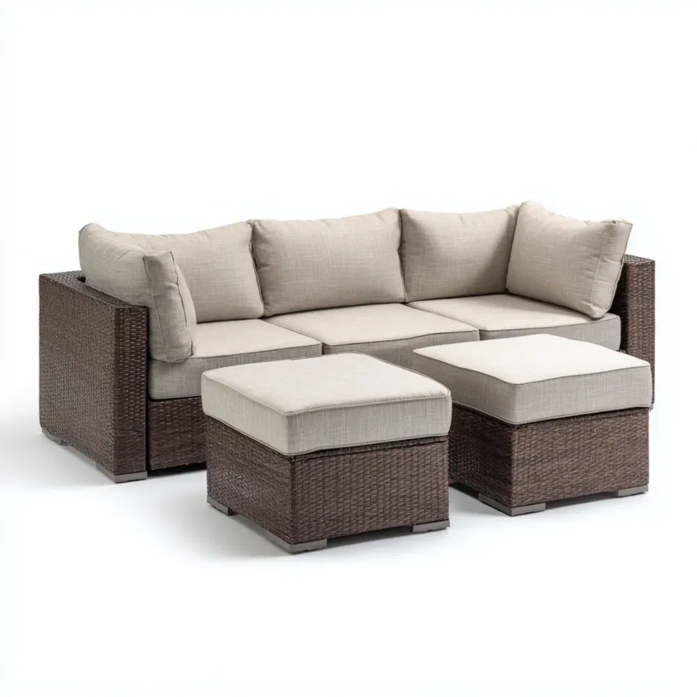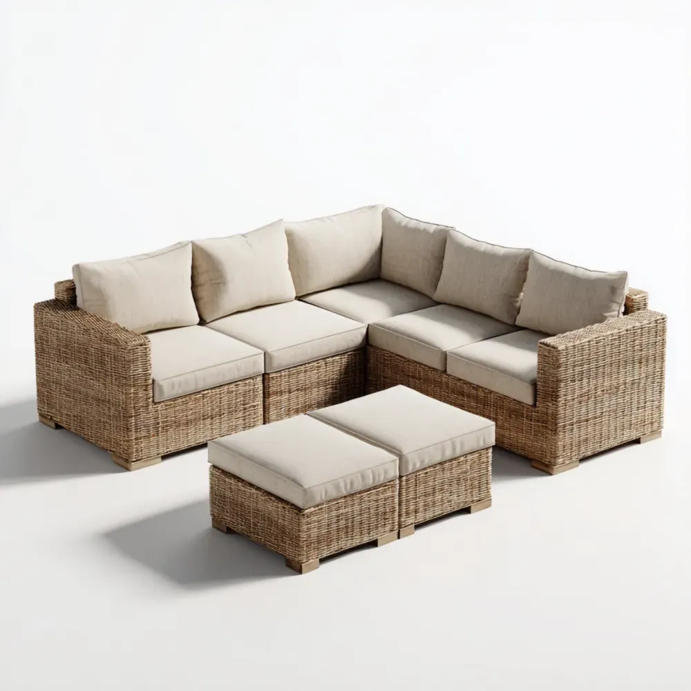 Conjunto de Sofá de Patio Ratán Sintético 210x210x75 cm Beige – Diseño Modular